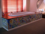 Este mosaico esta hecho en un cuarto de bano, los colores comunican con el interior de la casa. This mosaic is made as a bathdecoration. 2m x 40cm. The colors are chosen in accordance with the interior of the house.